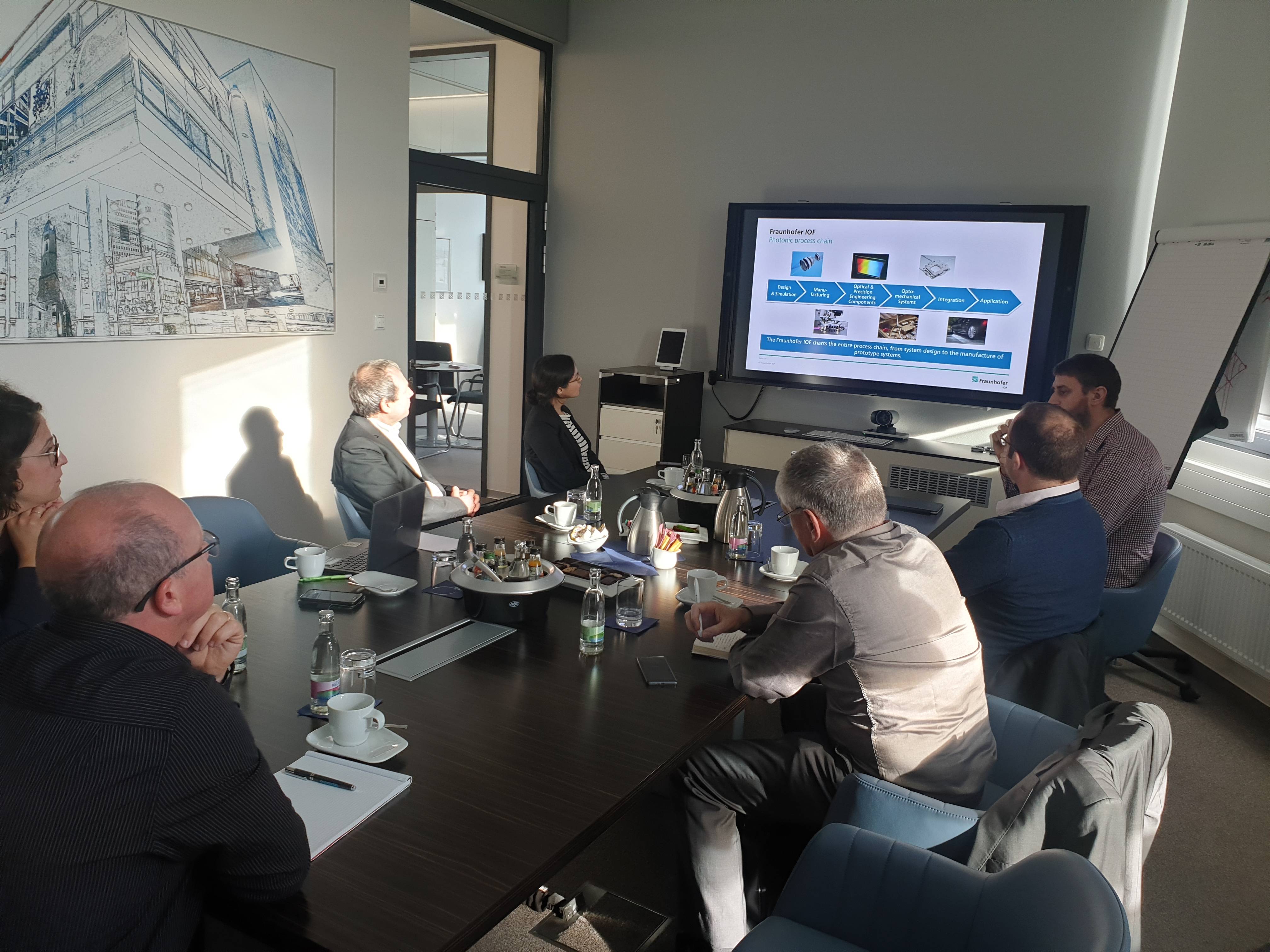 La délégation française du pôle Optitec et trois entreprises membres, ISP System, Symétrie et PISEO firent le déplacement. Ils y rencontrèrent notamment des représentants de Carl Zeiss Jena GmbH, Institut Fraunhofer IOF, Göpel Electronic et de l’Institut de technologie photonique de Leibniz.